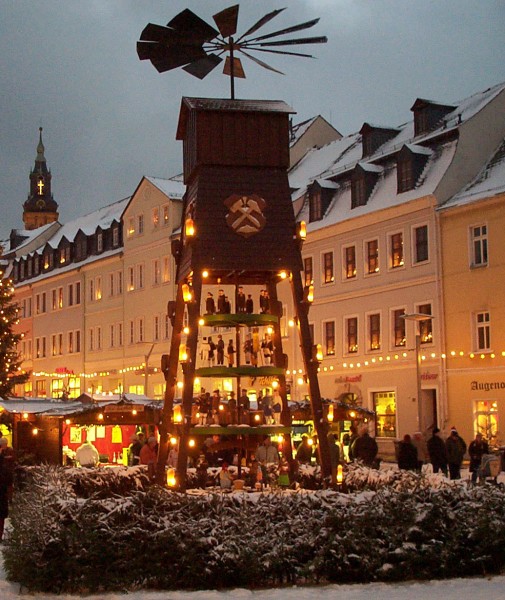 Der Weihnachtsmarkt lockt mit seinen Düften nach Rostern und Glühwein, verführt zum Naschen von Stollen, hält ein breites Angebot an erzgebirgischer Volkskunst und hochwertigem Kunsthandwerk bereit. Macht schon ein Bummel über diesen Markt Spaß, so zieht adventliche Freude auf Weihnachten seine Besucher schnell in ihren Bann.